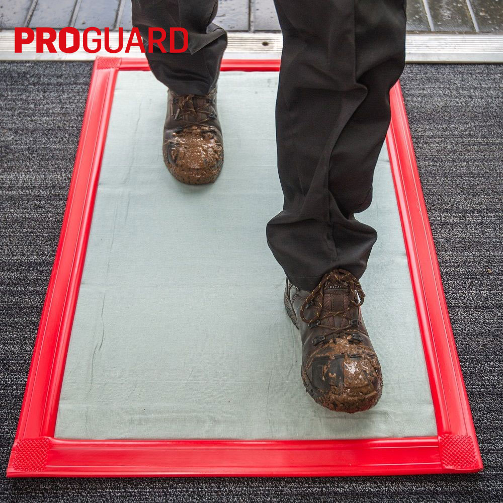 Proguard frames are designed for use with the Proguard dirt trap mats (PSM2) to create a system that is easy to use in any critical area. These are ideal for use in any area that does not allow direct adhesion to the flooring surface. The frames are constructed of a hard rigid polystyrene base material combined with a non-skid backing that holds the mats in place on almost any surface. Each frame comes with a 30-layer dirt trap mat already fixed to it.