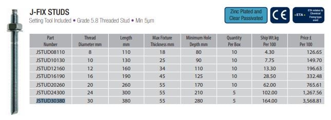 Designed for use when fixing with chemical resins. (Nut setter not included). Chisel point, prevents the rod turning when tightening with an external hex drive and embedment depth mark. Available in zinc plated.