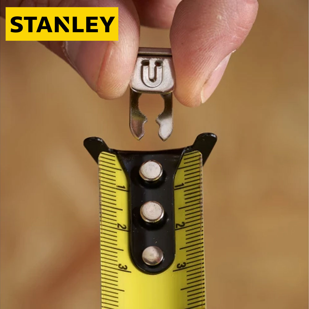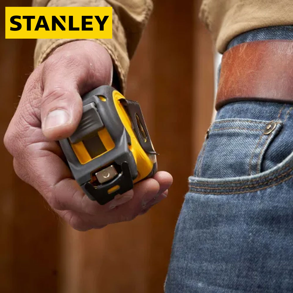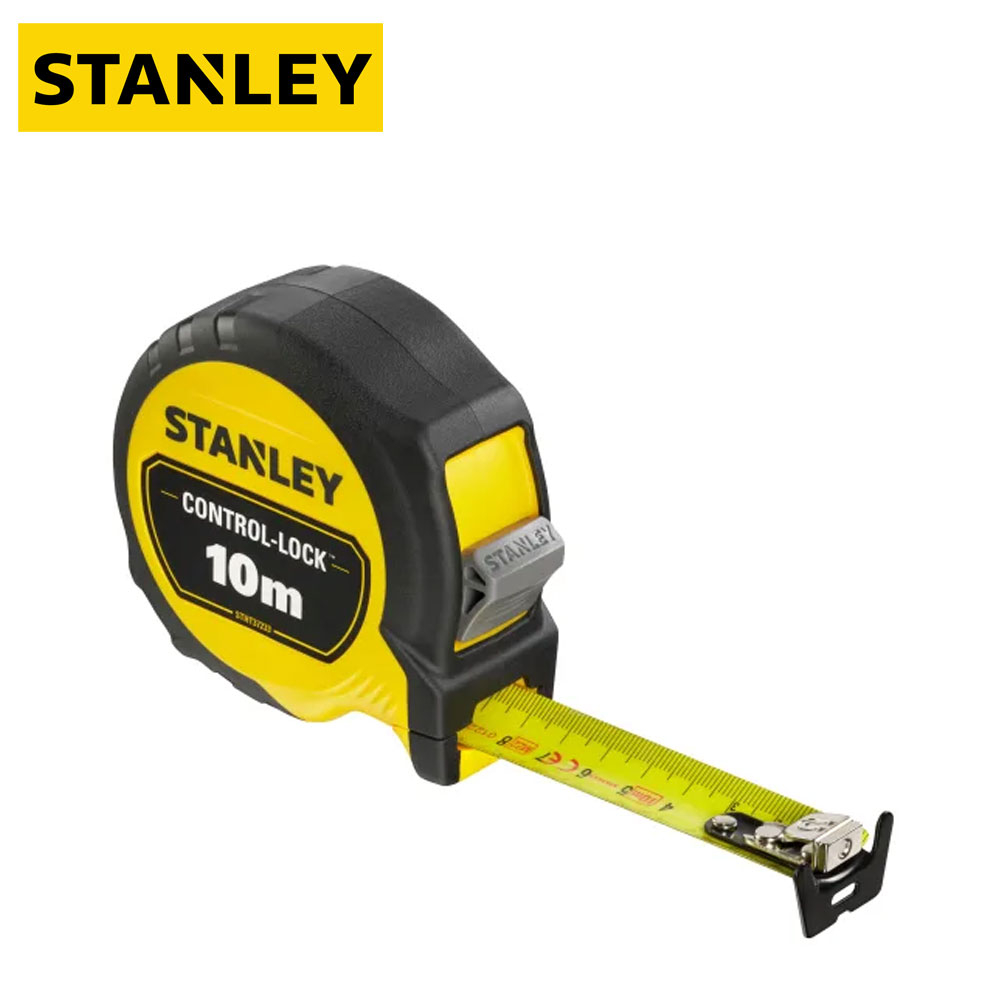 Lightweight and compact with a rubber over-moulded case the STANLEY® CONTROL-LOCK™  Tape Measure is ergonomically designed to ensure both comfortable grip and convenient use whilst delivering pro grade durability and extended reach.The tape is equipped with an integrated finger brake, providing users with maximum control and protection when extending and retracting the blade.The tape measure features a 25mm blade width and an impressive reach of 3.5 metres.The first eight centimetres of the blade have been treated with a durable BladeArmor® coating for optimum resistance to abrasion or breakage. Furthermore, the blade features a double-sided print to allow quick and easy overhead measurements.STANLEY® CONTROL-LOCK™ Tape Measure comes with a detachable magnet and a multi-catch hook for better grip and ultimate versatility for use on all surfaces. The bright yellow STANLEY blade ensures enhanced visibility in most jobsite conditions.