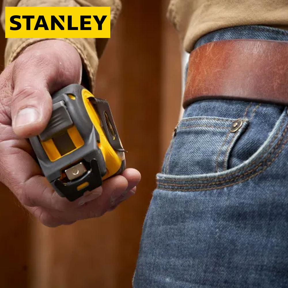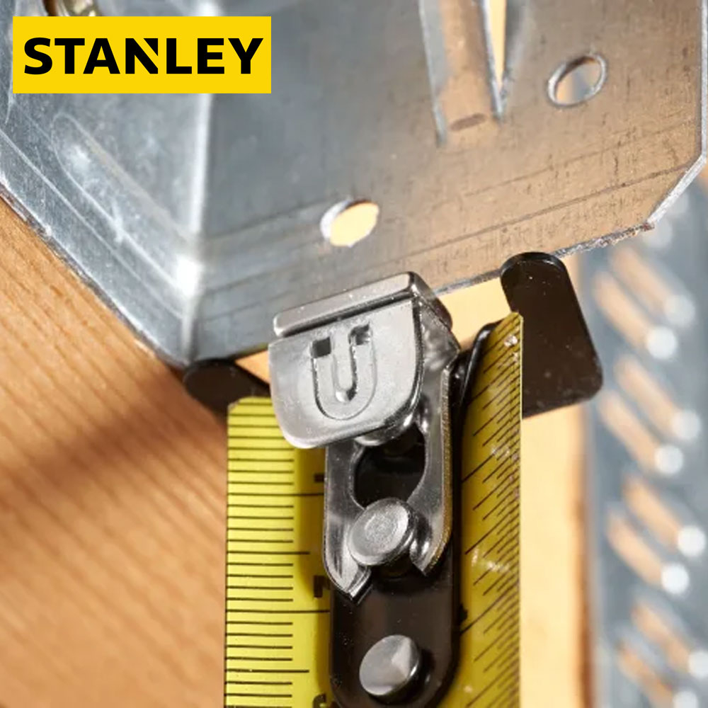 Lightweight and compact with a rubber over-moulded case the STANLEY® CONTROL-LOCK™  Tape Measure is ergonomically designed to ensure both comfortable grip and convenient use whilst delivering pro grade durability and extended reach.The tape is equipped with an integrated finger brake, providing users with maximum control and protection when extending and retracting the blade.The tape measure features a 25mm blade width and an impressive reach of 3.5 metres.The first eight centimetres of the blade have been treated with a durable BladeArmor® coating for optimum resistance to abrasion or breakage. Furthermore, the blade features a double-sided print to allow quick and easy overhead measurements.STANLEY® CONTROL-LOCK™ Tape Measure comes with a detachable magnet and a multi-catch hook for better grip and ultimate versatility for use on all surfaces. The bright yellow STANLEY blade ensures enhanced visibility in most jobsite conditions.