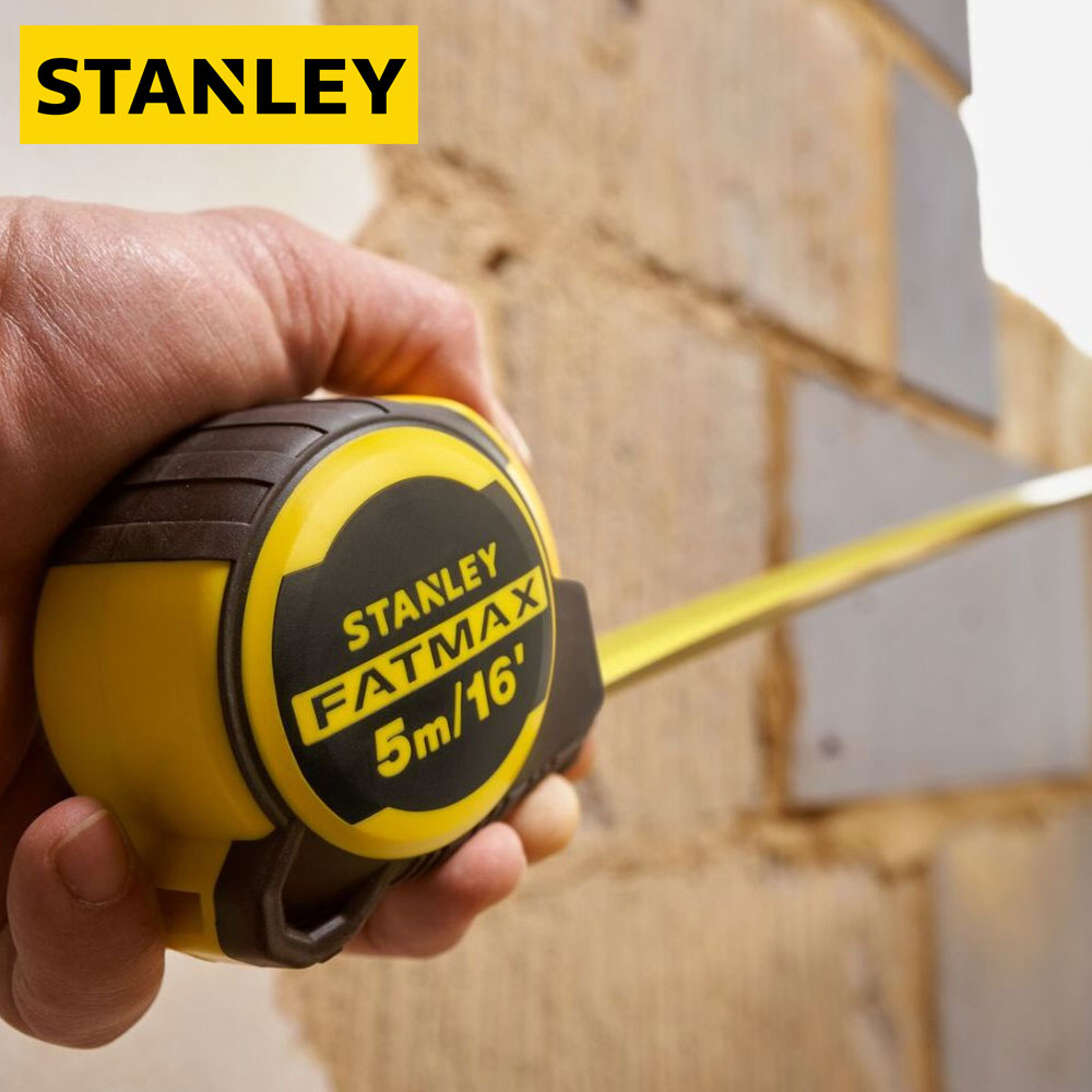 The next generation STANLEY® FATMAX® tape measure is our most resilient and versatile tape measure ever, delivering 4.9M reach to help you measure confidently from a distance, even when working alone. Ergonomically engineered to fit comfortably in the palm of your hand and with a bi-material casing for exceptional grip, this robust tape is equipped with our patented Twin-Core™ technology, resulting in a compact case design that takes up less space on your tool belt. For added practicality, accuracy and convenience, the STANLEY® FATMAX® Tape Measure has been printed on both sides of the blade to enable easier overhead measurements or use in awkward spaces. Its new flat-based design ensures more stability on work surfaces, while the innovative Multi-Catch Hook has been re-engineered to provide extra contact surface and grip. Manufactured to last, the premium STANLEY® FATMAX® Tape Measure features an abrasion-resistant blade coating, while the first 20cm is treated with a BladeArmor™ coating for enhanced protection against kinking or tearing in the most vulnerable part of the blade. An essential tool for any trade professional’s toolbox, the STANLEY® FATMAX® tape measure is built to withstand the most extreme jobsite environments.