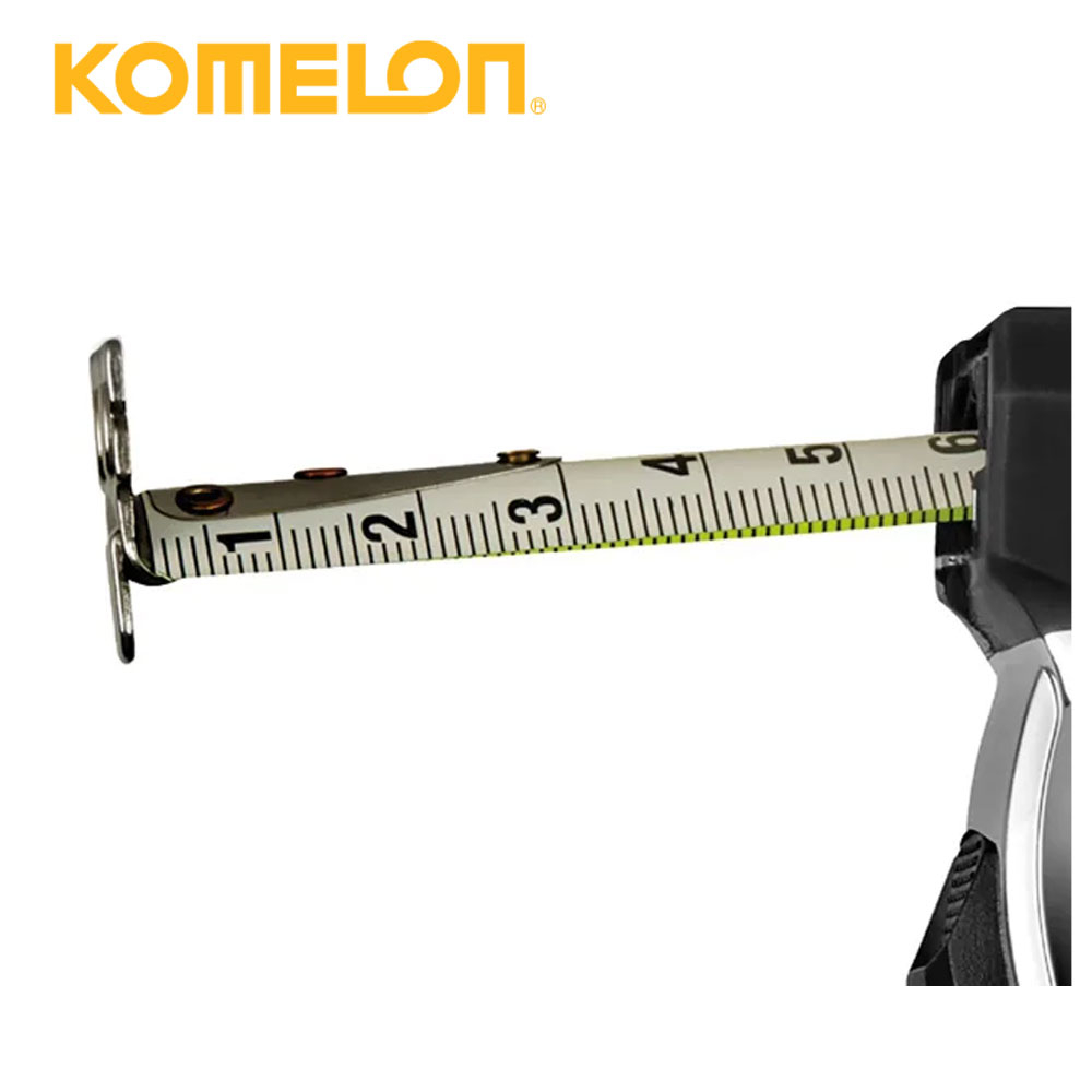 The Komelon PowerBlade™ II Pocket Tape has a Dura NY nylon coated steel dual printed blade with vertical blade markings on the reverse and patented hi-vis blade printing. The Dura NY nylon coating offers superior quality that lasts up to 15x longer.
