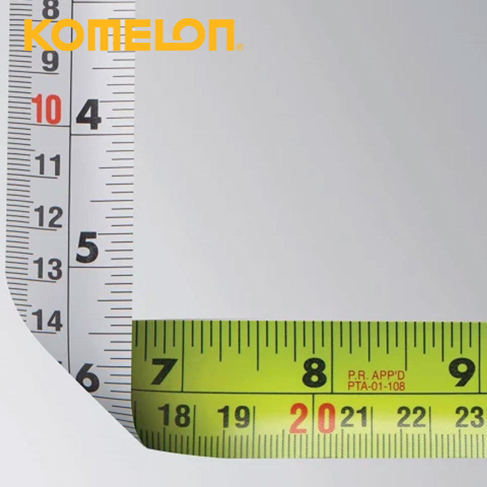 The Komelon PowerBlade™ II Pocket Tape has a Dura NY nylon coated steel dual printed blade with vertical blade markings on the reverse and patented hi-vis blade printing. The Dura NY nylon coating offers superior quality that lasts up to 15x longer.