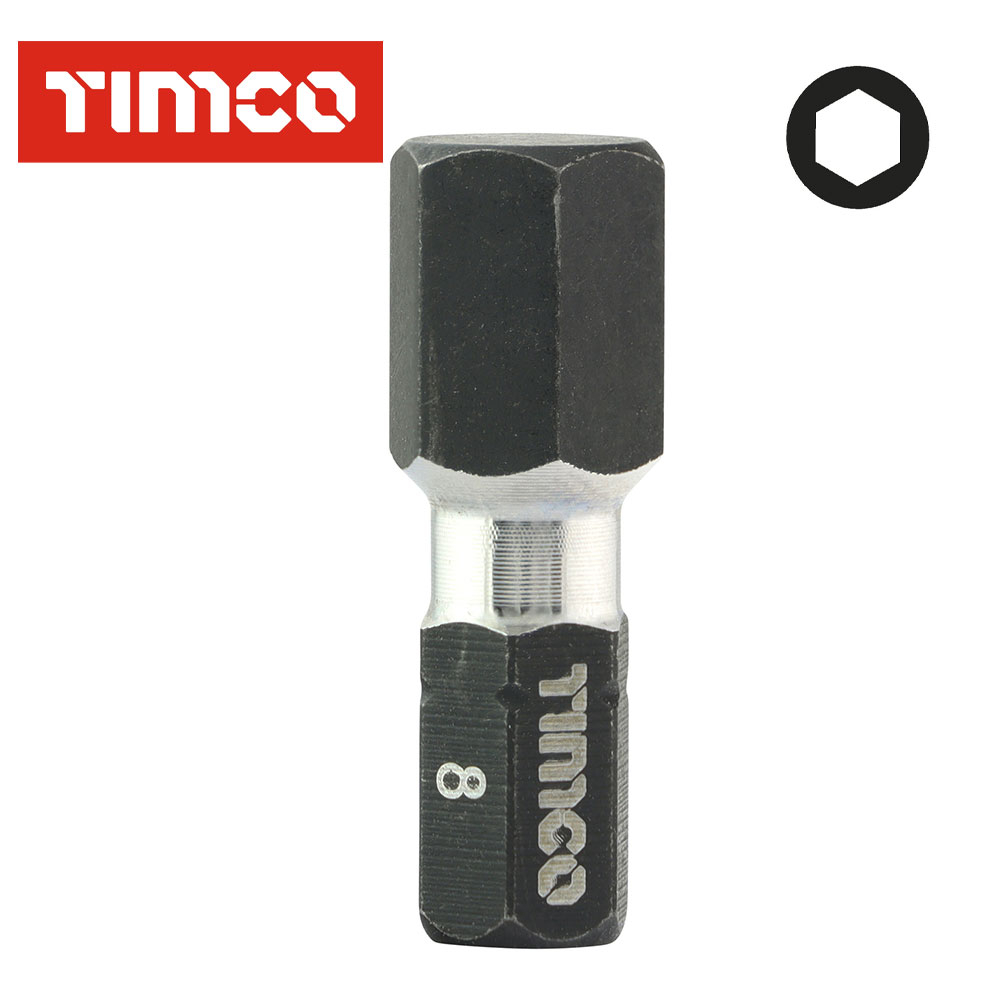Timco Impact Rated Screwdriving Bits Hexagon QTY:10 (3-8mm)(25mm)