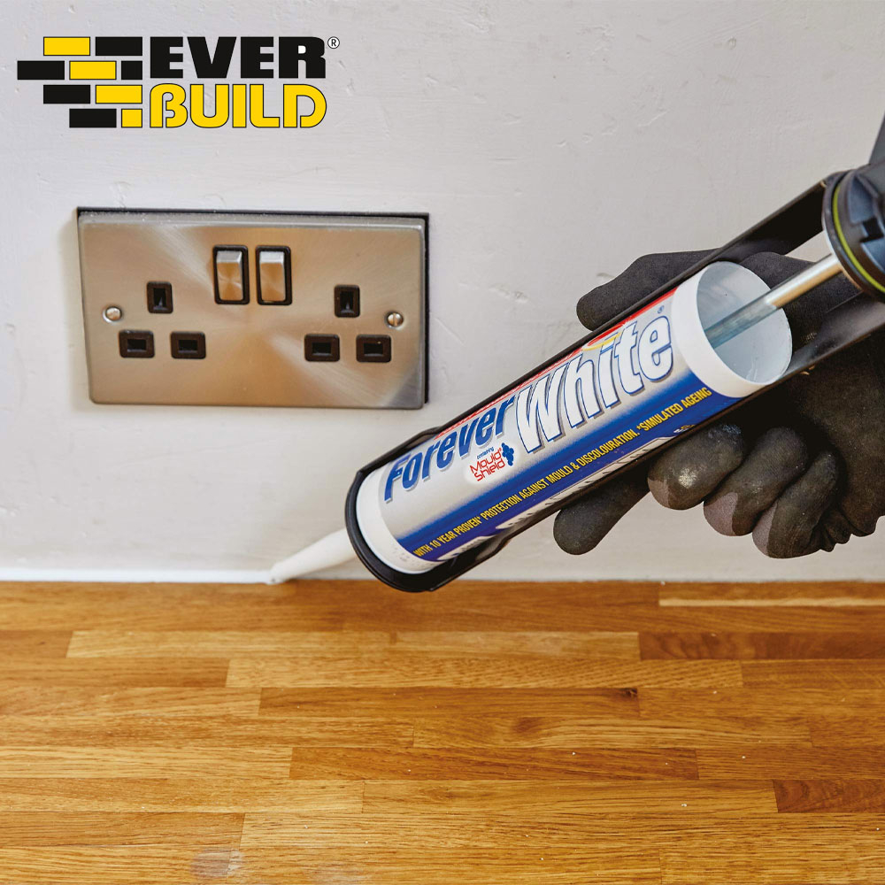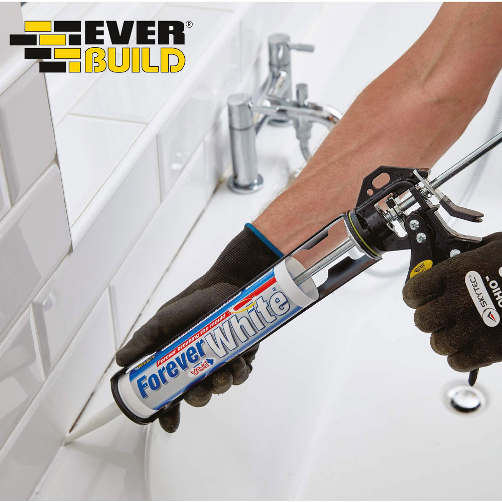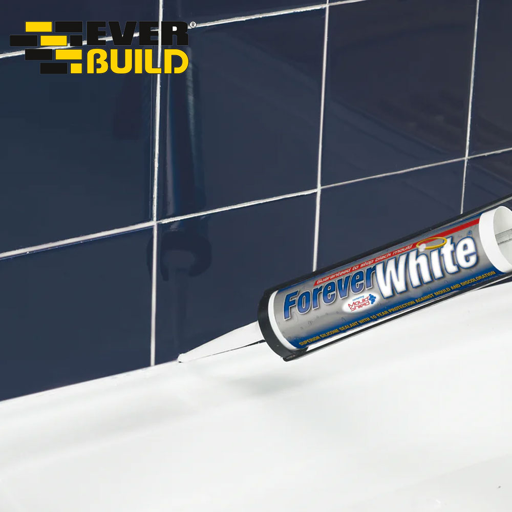 Forever White is a superior silicone sealant that is permanently waterproof and flexible and ideal for sealing shower bases and cubicles, wet rooms, around baths, sinks and basins. It is also ideal for use in kitchens and utility rooms along with sealing window and door frames.