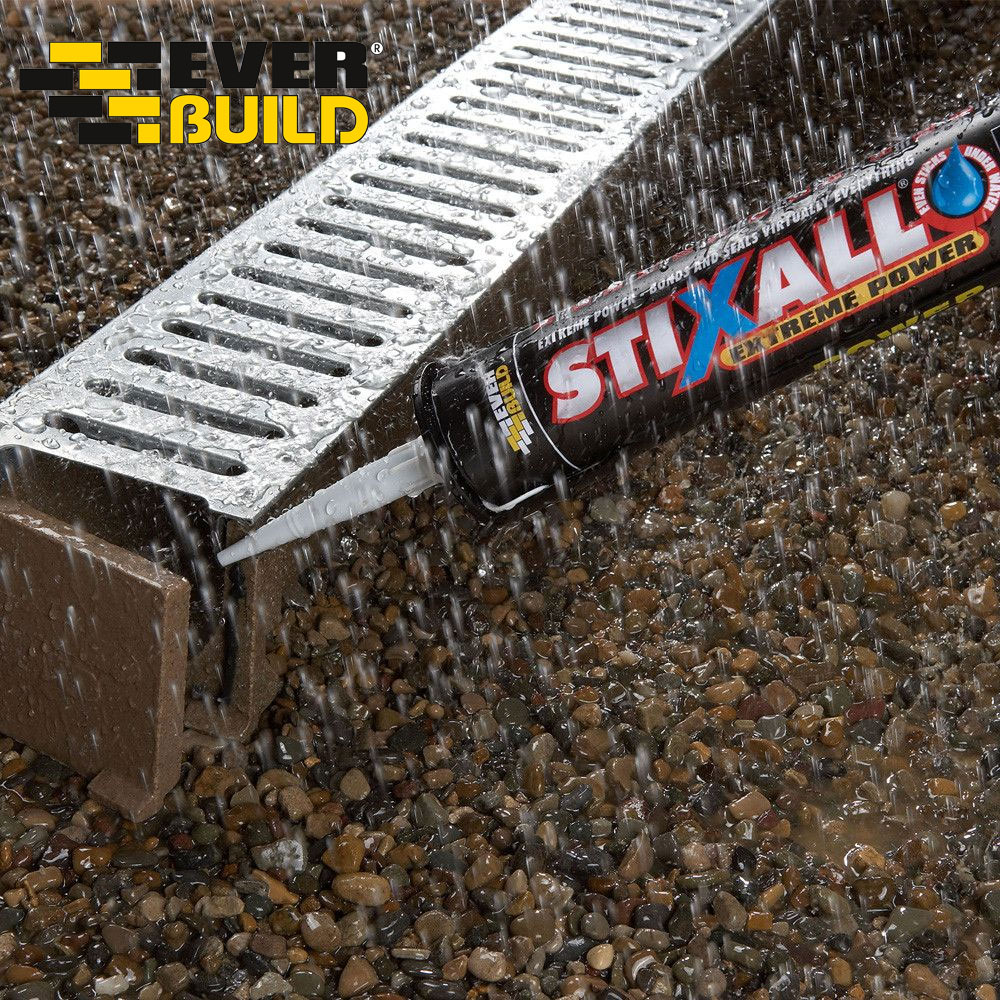 Everbuild Stixall Extreme Power is the ultimate combined building adhesive and sealant, based on hybrid polymer technology, with the most Extreme power to both bond and seal virtually EVERYTHING to ANYTHING in nearly all conditions, even under water or in the rain!