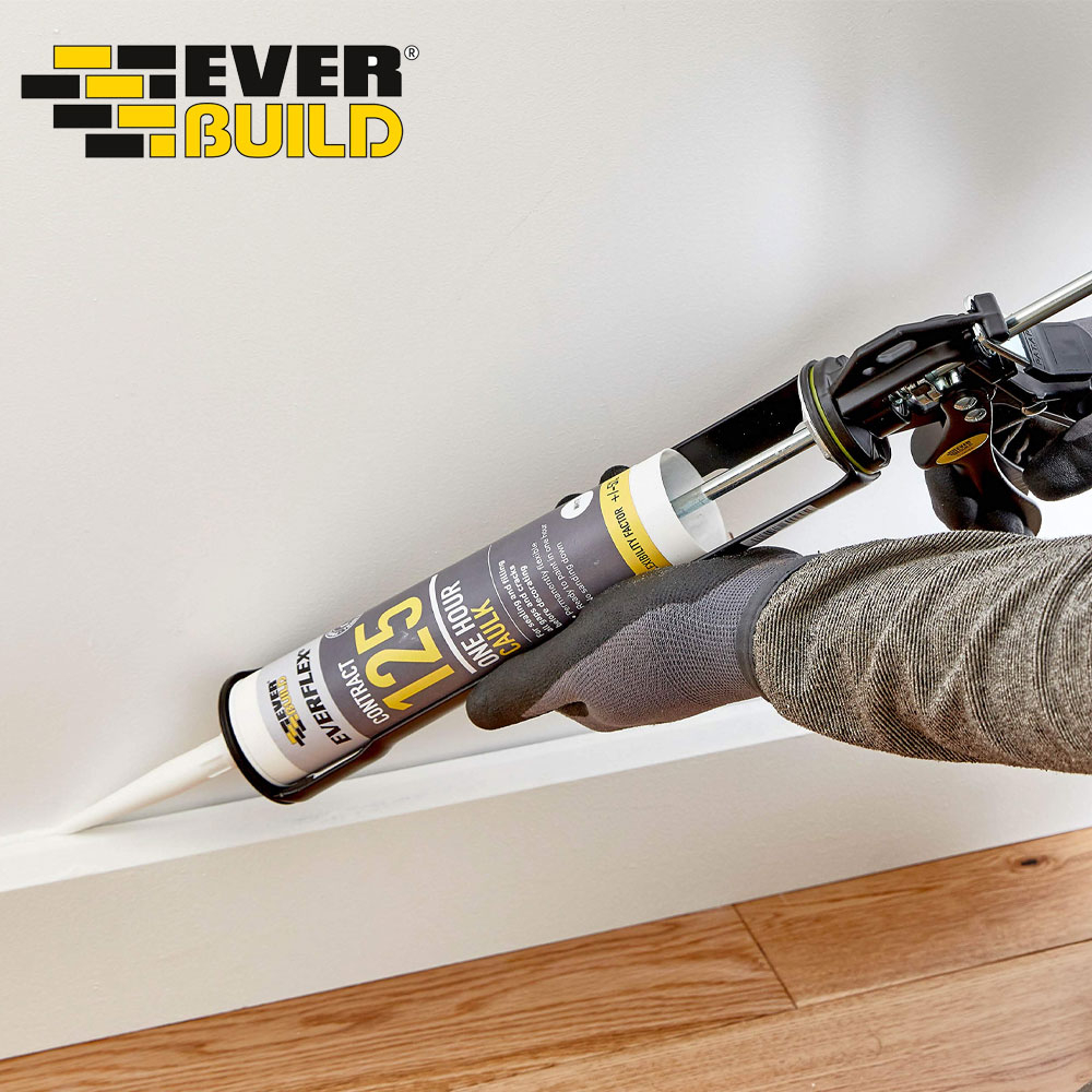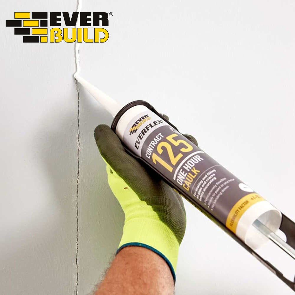 Everflex Contract 125 One Hour Caulk is a fast-drying flexible decorators’ filler and sealant that remains permanently flexible. Can be overpainted with most paint types or covered over with wallpaper; no sanding down required.