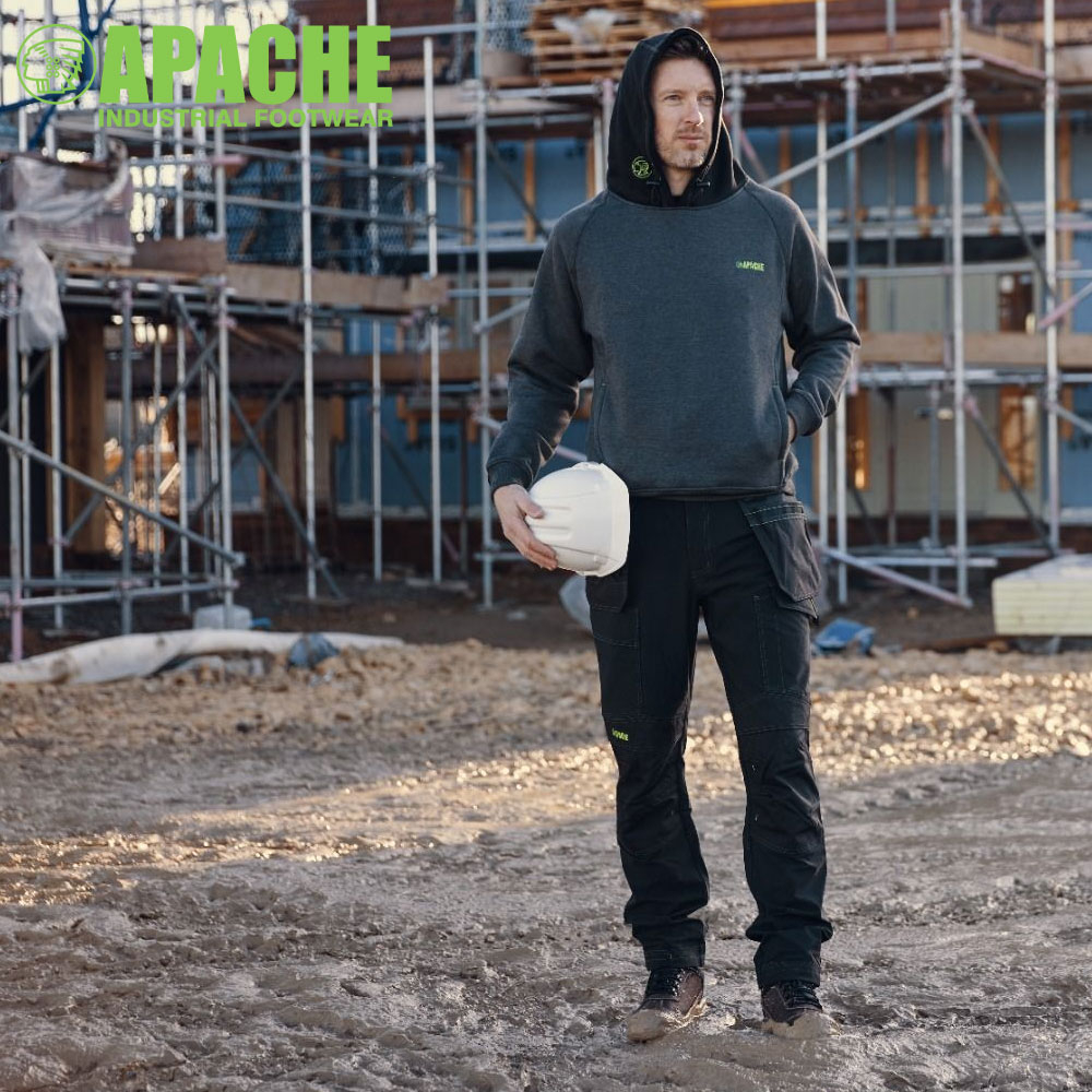 A quality heavyweight, hardwearing hoody, the Kingston by Apache is your ideal garment for those harsh winter months. The hoody has a poly-cotton outer material,with a brushed back fleece inner for added comfort. Toggle adjustable hood and kangaroo pocket. Designed with the worker in mind, the hooded sweatshirt incorporates durable cotton covered elbow patches and triple stitching to ensure its performance. Apache embroidered branding to left chest, arm, hood and rear. Another quality garment designed by you for you from Apache.