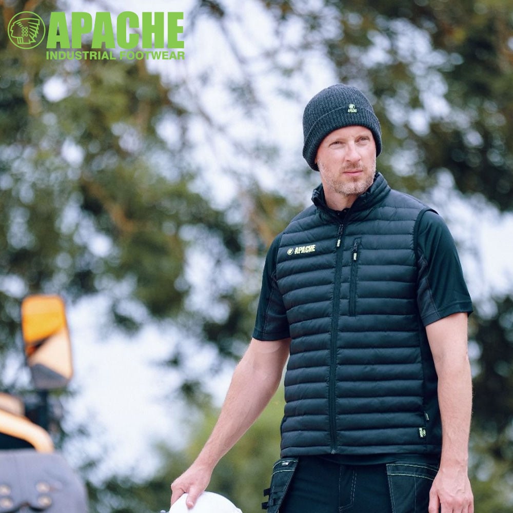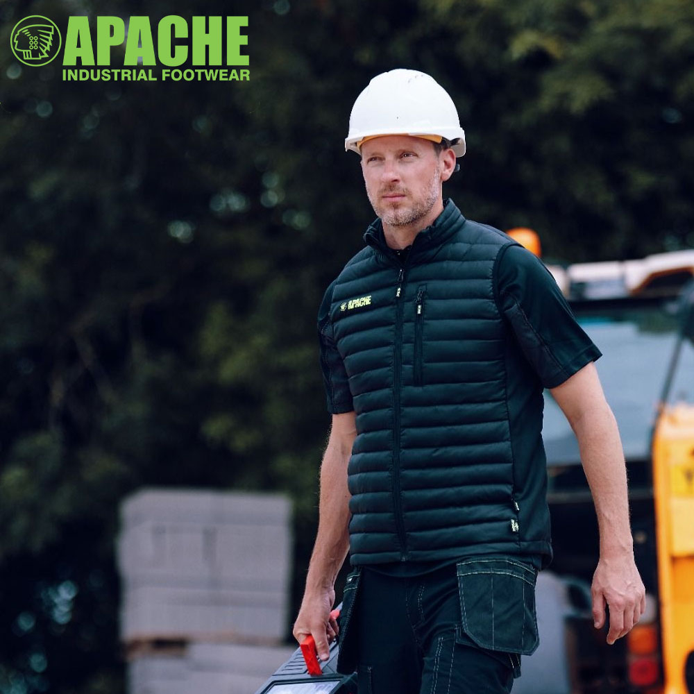 The PICTON is the best gilet from Apache yet. Featuring a nylon ripstop main fabric, with stretch side panels, to ensure maximum comfort and movement throughout wear. The individual baffles are filled with recycled polyester. There is a zipped pocket to the left chest along with two zipped front pockets. At the top of the main zip you have a cover to ensure the zip does not rub when zipped up fully. The gilet has a drawstring cord hem to ensure it fits perfectly to each wearer. Subtle Apache branding to bottom front and rear of the jacket. Pairs perfectly with our new Calgary trouser and Whislter shorts for whatever weather you are working in.