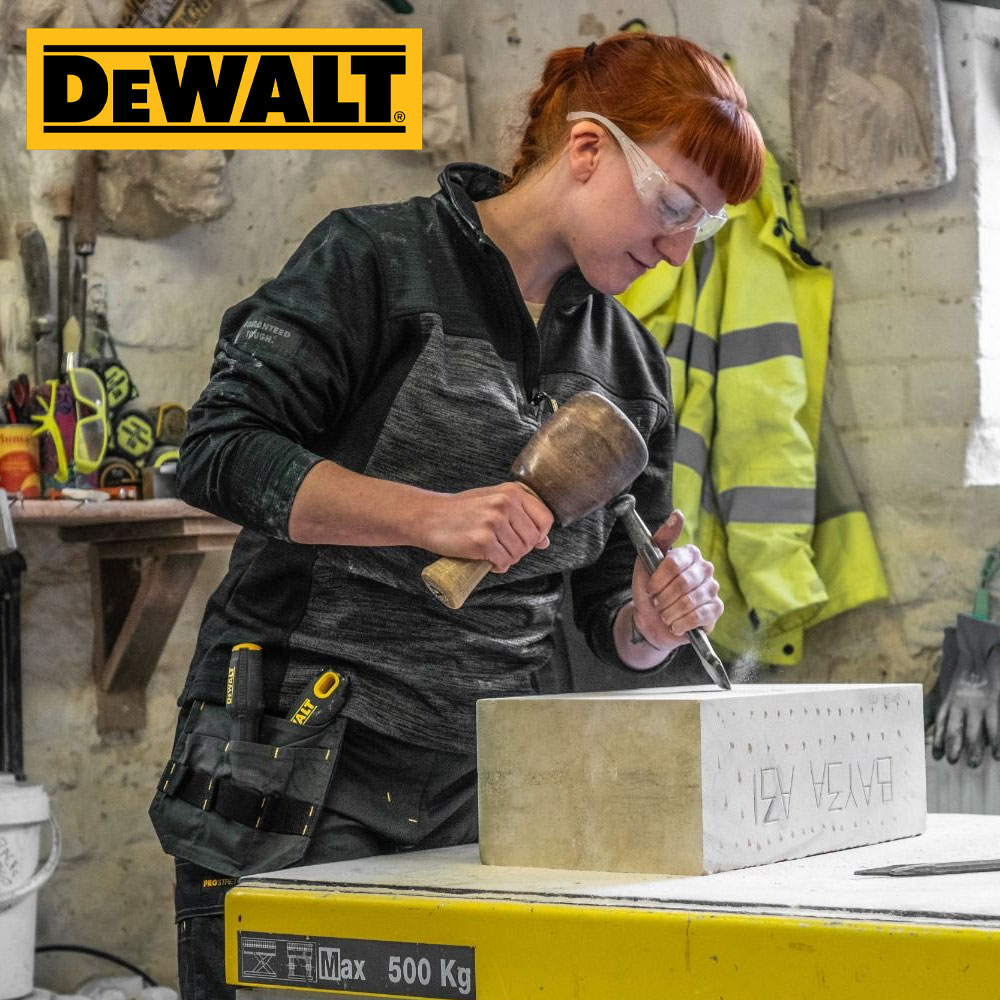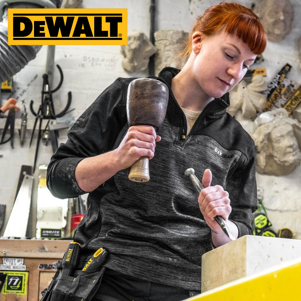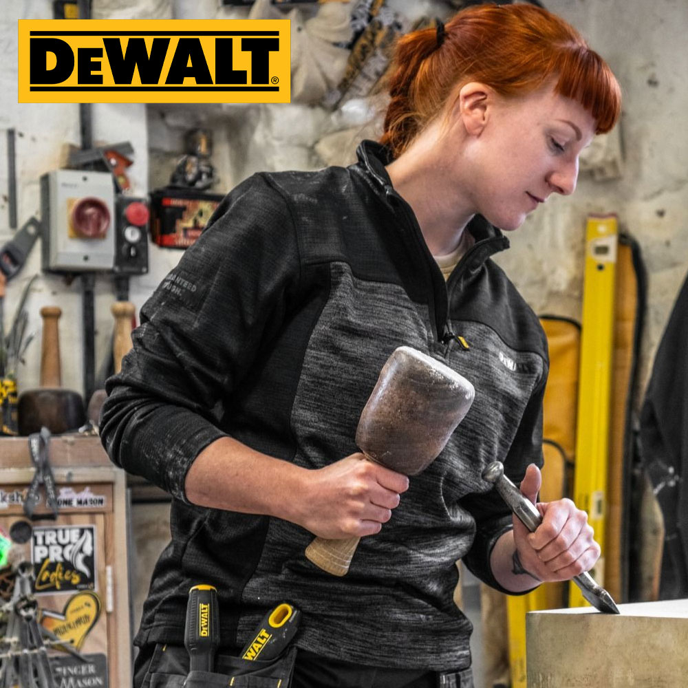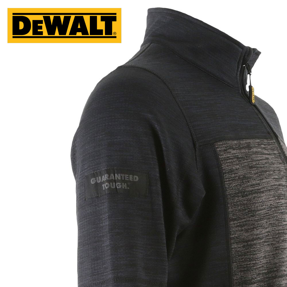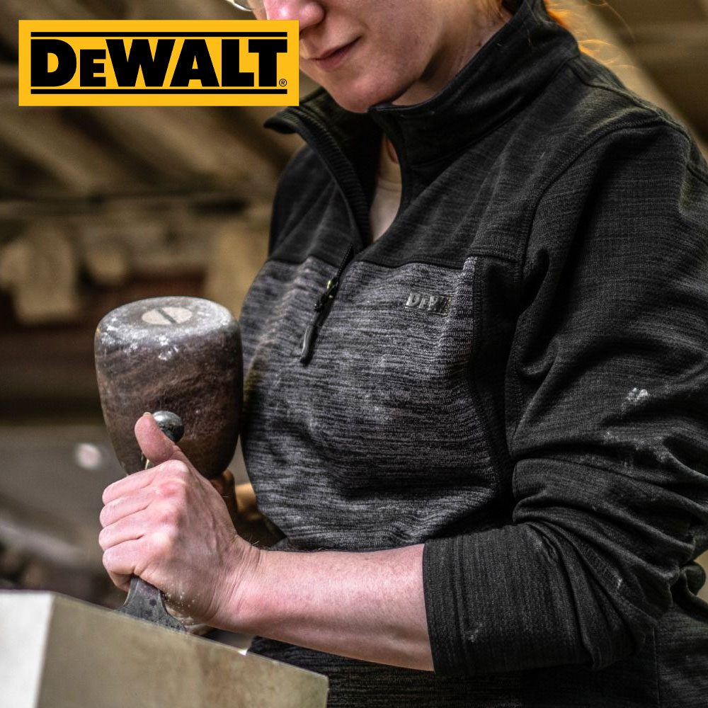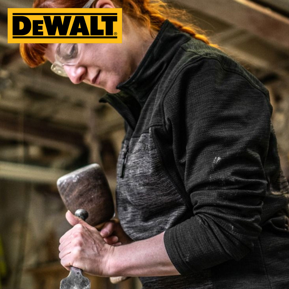 Charlotte zip fleece is a mid layer 1/4 zip top in all over stretch fabric. Grid fleece backing for added comfort. Funnel neck collar. Two tone black grey colour with DeWalt branding. Flatlock seam construction.